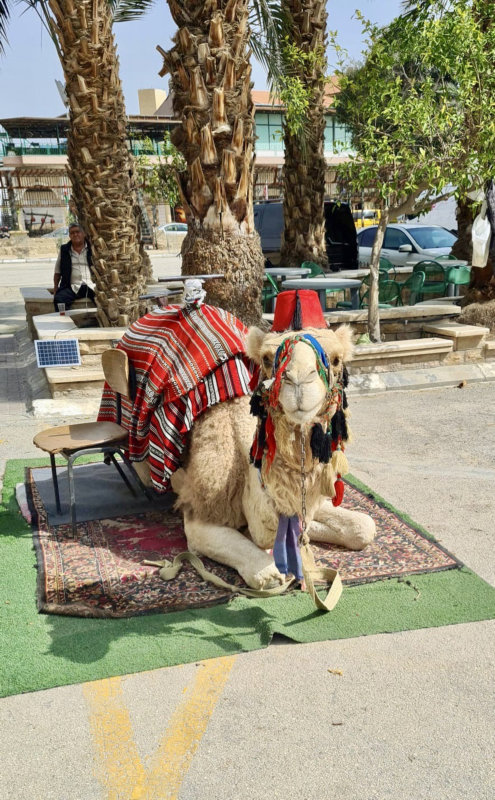 Dressed Camel, you will see or even ride some of those in the Holy Land